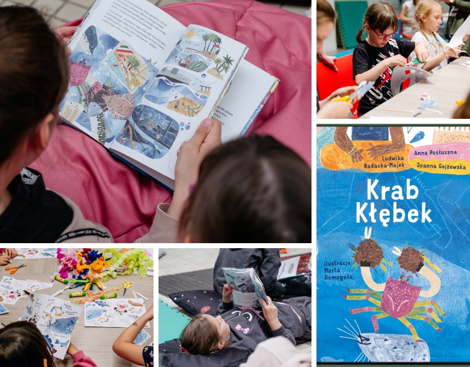 "Warsztaty z Krabem Kłębkiem", które poprowadzą Joanna Gojżewska i Martyna Grodzka z Muzeum Emigracji w Gdyni. Przygody Kłębka i jego przyjaciół to historia o współpracy i przyjaźni ponad podziałami, a także okazja, by dowiedzieć się wielu ciekawostek o morskiej faunie i florze, o historii migracji gatunków oraz zagrożeniach, które czyhają na zwierzęta morskie. Razem z autorką książki zanurzymy się w historii Kraba i stworzymy swoje książeczki inspirowane morską głębią. Początek warsztatów o godz. 11:00 i 13:00.Zajęcia na ZAPISY!